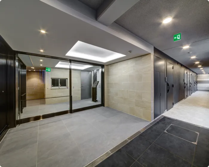 さらに自転車が入るサイズのエレベーターを採用し、各階に各戸専用の駐輪場を設けたことで、1階にも収益を生む事務所スペースを創出すると同時に、ID認証で停止階を制御して安全性を確保するホテルライクな仕様になっています。空間を効果的に使った高い収益性と、オーナー様のセンスを反映させた上質な空間を両立させました。