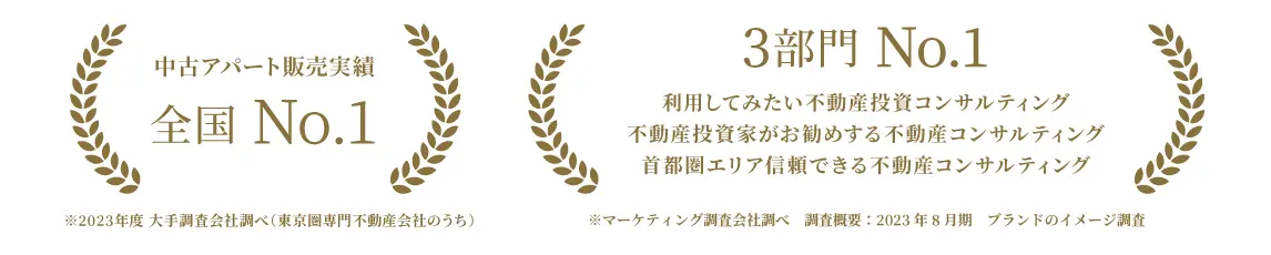 弊社は、一棟中古アパートの取引実績で≪2年連続全国1位≫を獲得することができました。(大手調査会社調べ)