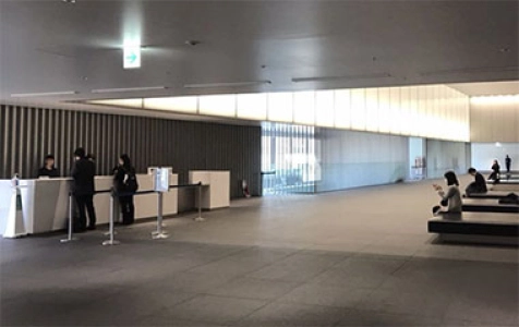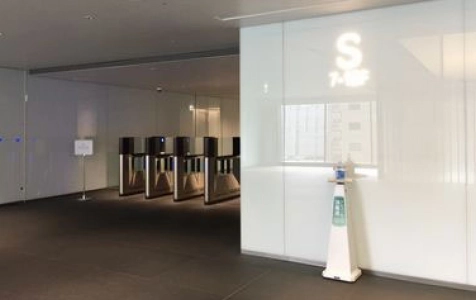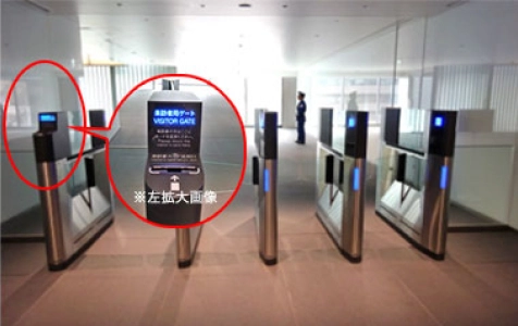ゲート一番左が「来客者用ゲート」です。セキュリティカードを返却すると、ゲートが開きます。※お帰りの際にも、受付でお配りしたセキュリティーカードが必要となります。