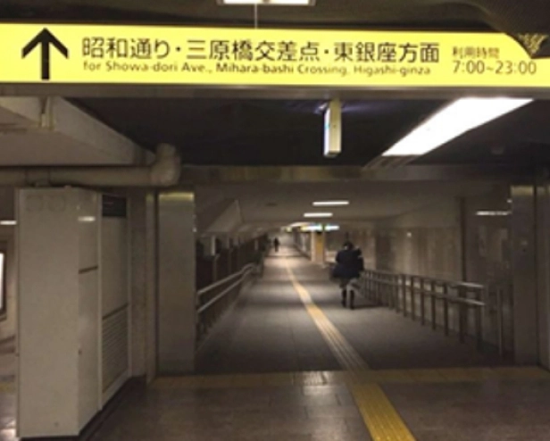 A5出口向かって左手の「昭和通り・三原橋交差点・東銀座方面」の通路をお進みください。