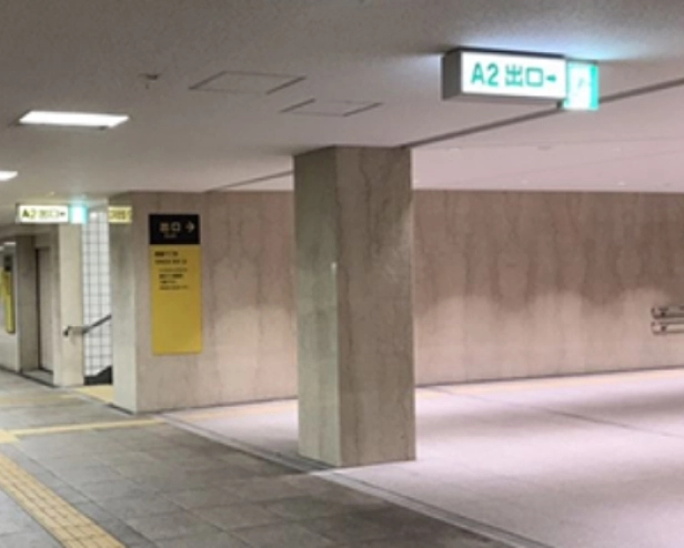 すぐ右手にございます「S2出口」手前の地下連絡通路を右折してお進みください。